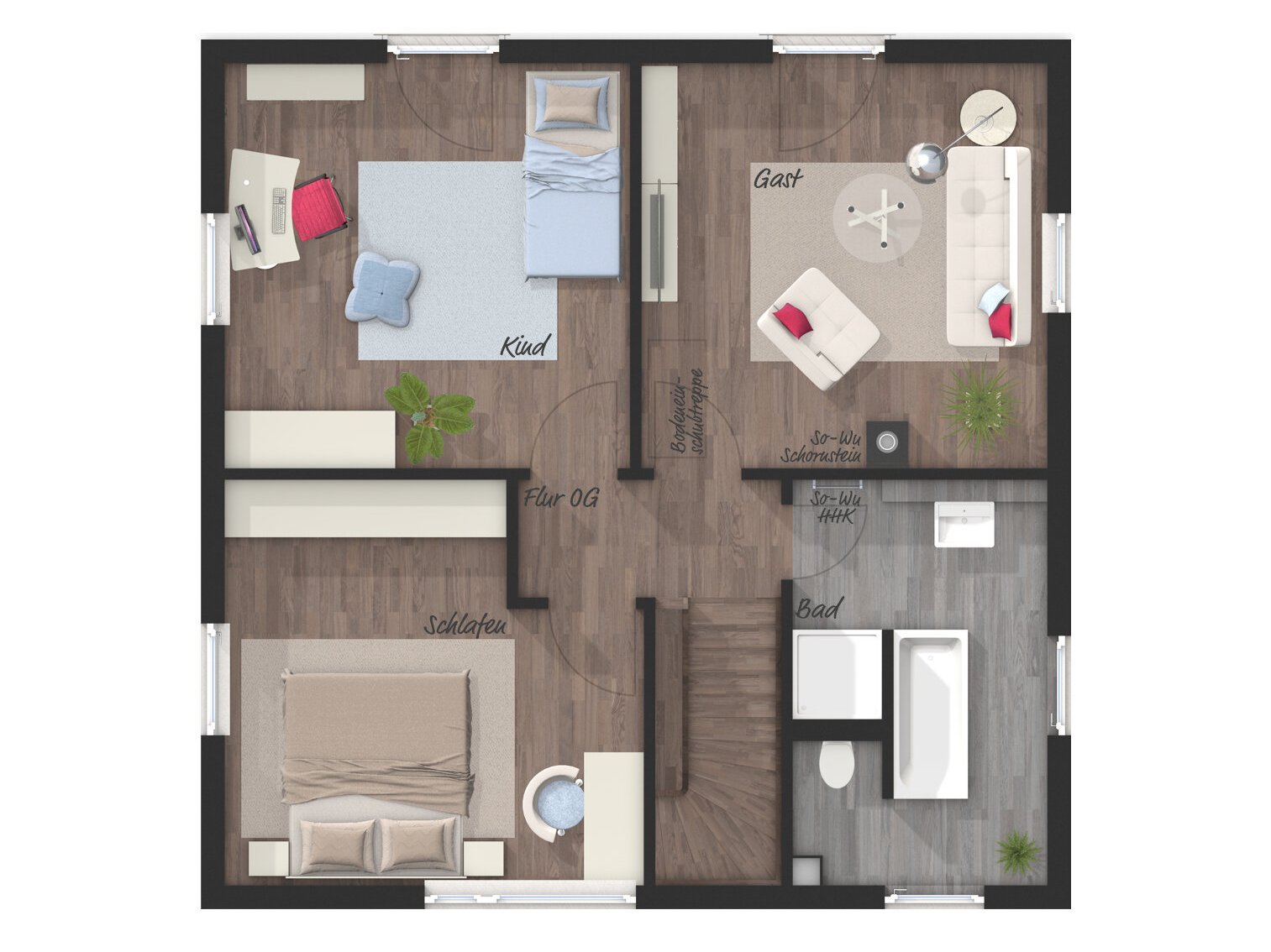 - Gäste-, Arbeits- oder zweites Kinderzimmer