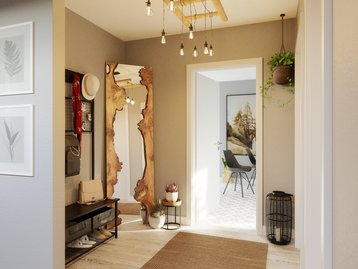 Offene Wohnräume leben von Großzügigkeit. Diese Wirkung geht verloren, wenn Laufwege verstellt oder Sichtachsen blockiert werden. So sollte der Raum bereits vom Eingangsbereich oder Flur aus aufgeräumt und einladend wirken. Platzieren Sie auffällige Möbel oder Deko-Elemente daher bewusst und vermeiden Sie es, unruhige Bereiche direkt ins Blickfeld zu rücken. Achten Sie außerdem darauf, dass zwischen Möbelstücken genügend Bewegungsfreiheit bestehen bleibt.